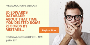 JD Edwards Database: About That Time You Deleted Some Records By Mistake… Sep 5, 2019 12:00:00 AM JD Edwards Webinar webcast Read More